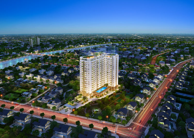Quy mô: 238 căn hộ–3 tầng thương mại